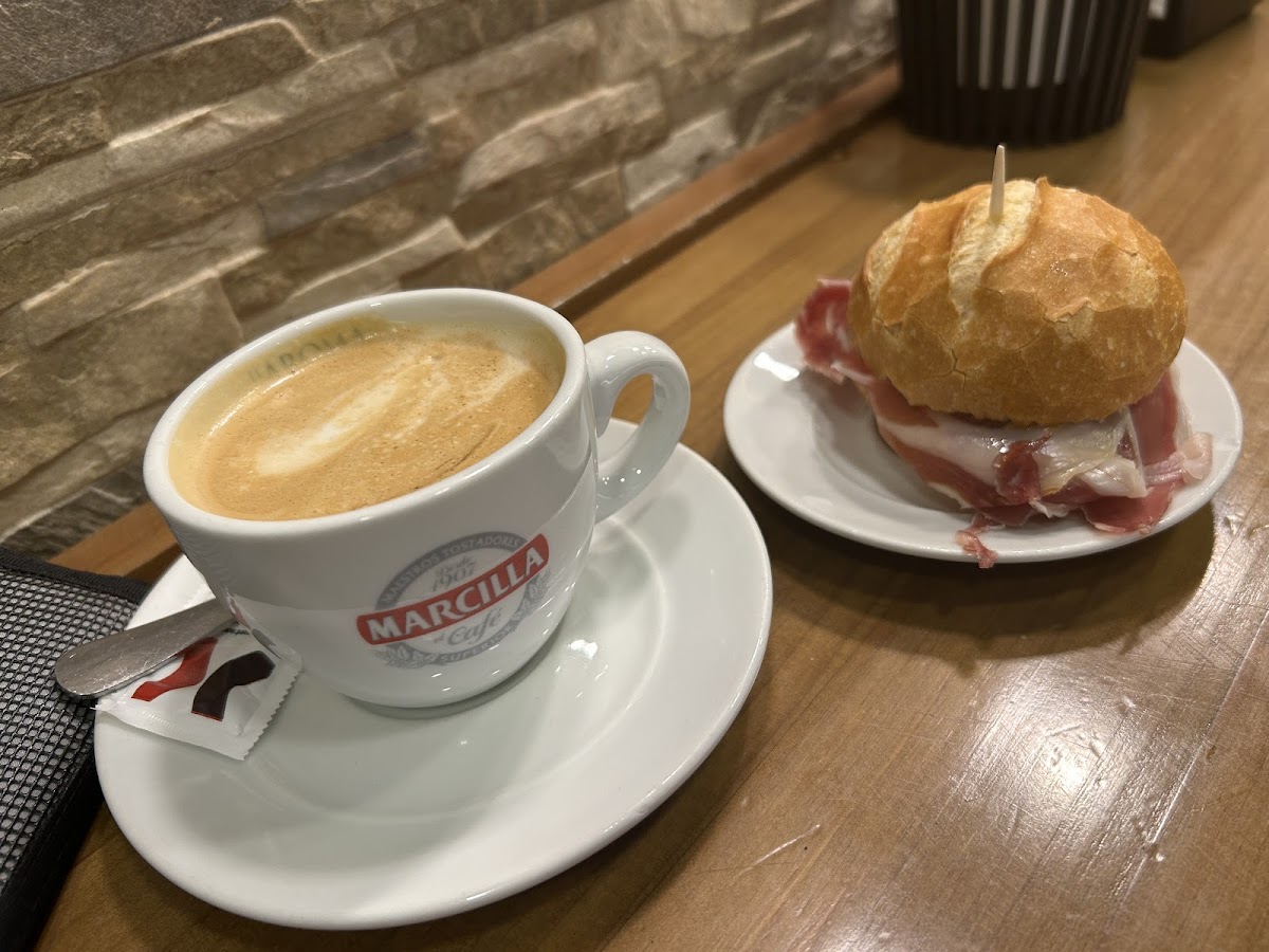 Friendly, local place with a variety of pintxos for breakfast and a great cafe con leche — would recommend. Got the jamón and tomate sandwich and it was perfect. Also does fresh squeezed orange juice!